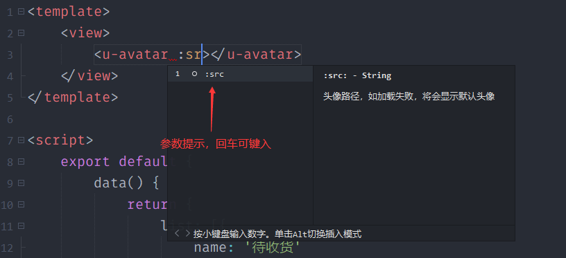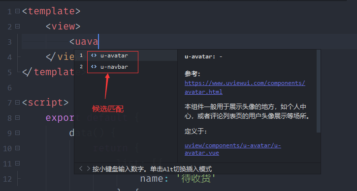 u-alert-tips组件,我们可以敲<u-altip,<u-tips,或者<u-aler等等,都可识别出组件的提示,总的来说,以<u,开头,后面可以是组件的部分关键字,前中后部分都可,大家可自行尝试。